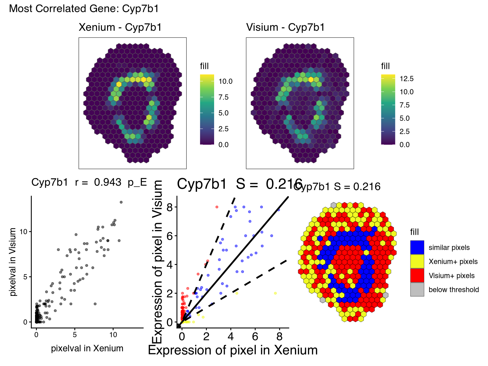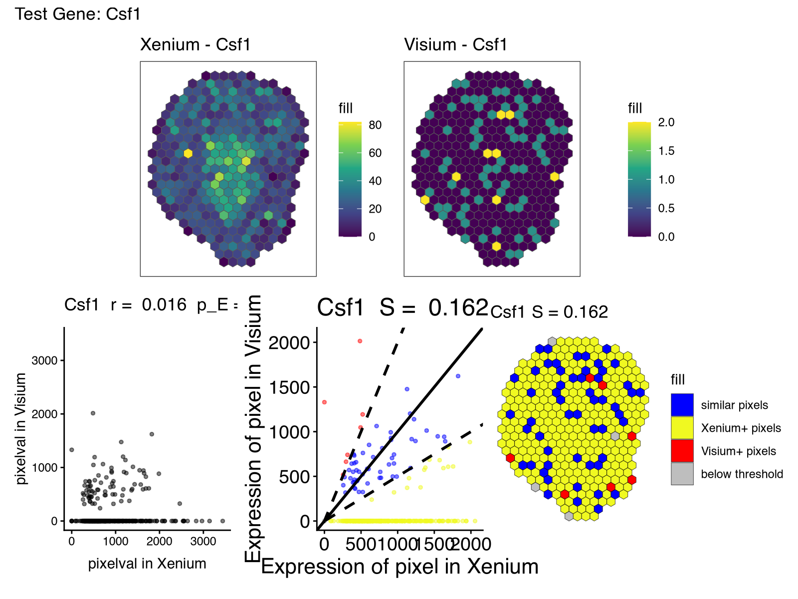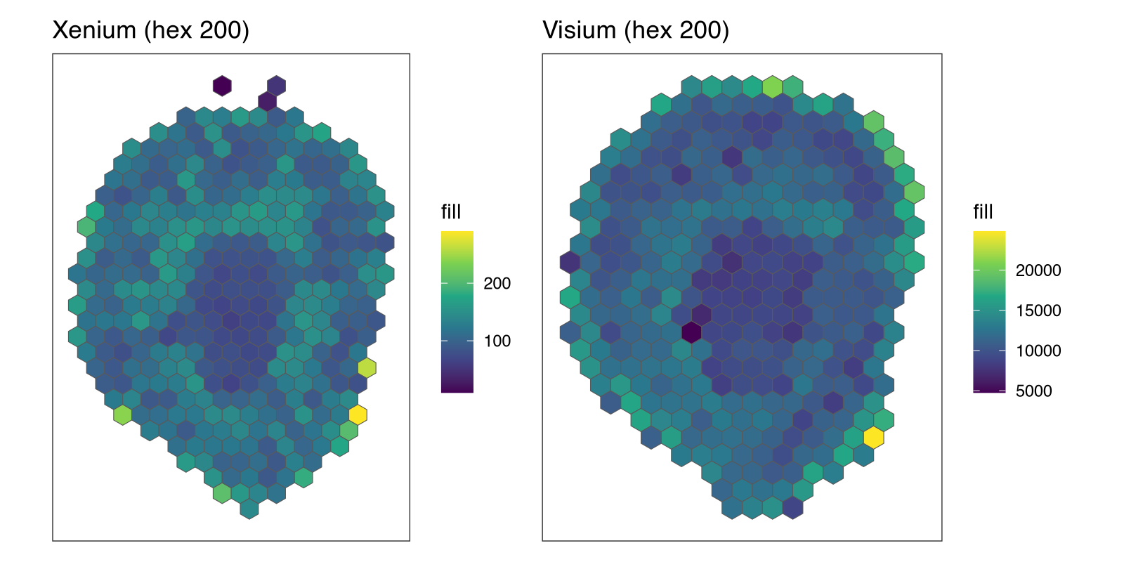 Claude correctly read in the data, created SpatialExperiment objects, and realized it needs to use the dependency SEraster to create hexagonal bins. This is of course all laid out in the associated tutorial and documentation files, which Claude had access to. Now let’s actually do some quantitative comparisons.