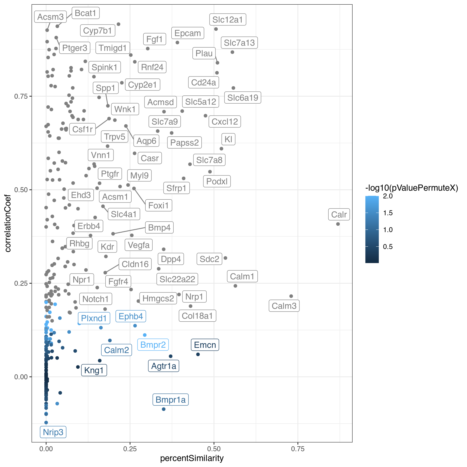 corr_most <- plotCorrelationGeneExp(rastList, sc, gene_most)